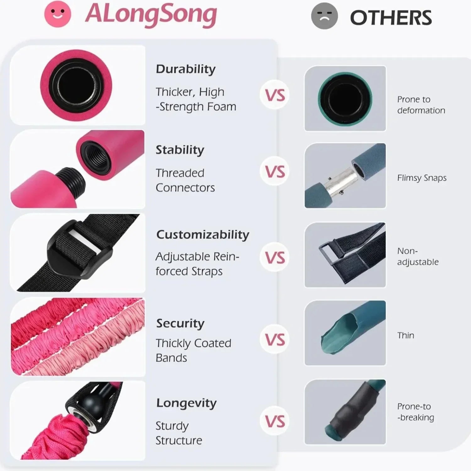 Transform any space into your personal gym with this 180lbs 13-Piece Resistance Band Pilates Bar Kit – an all-in-one home fitness solution designed for strength training, toning, mobility, and rehabilitation. Built from high-quality stainless-steel tubing with thick foam grips for comfort and support, this versatile system allows you to perform a wide range of exercises, from squats and presses to curls and stretches, targeting every major muscle group.