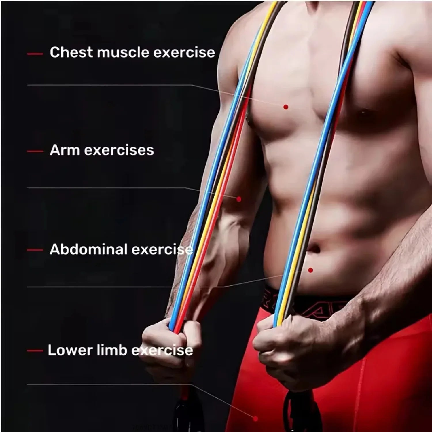 5 × TPE resistance tubes (10 lb, 20 lb, 30 lb, 40 lb, 50 lb) – combine for up to 150 lbs of resistance
